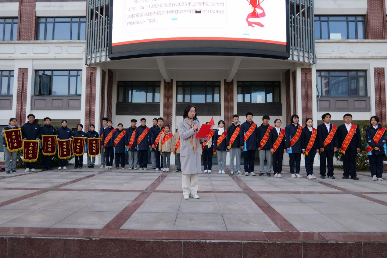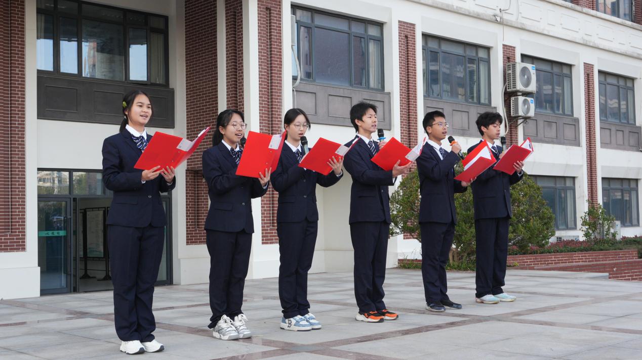 升旗仪式伊始,谈俊副校长宣读了十二月份光荣护旗手名单。伴随着雄壮的国歌与朝气的校歌,五星红旗与校旗冉冉升起,全体师生肃立致敬。
