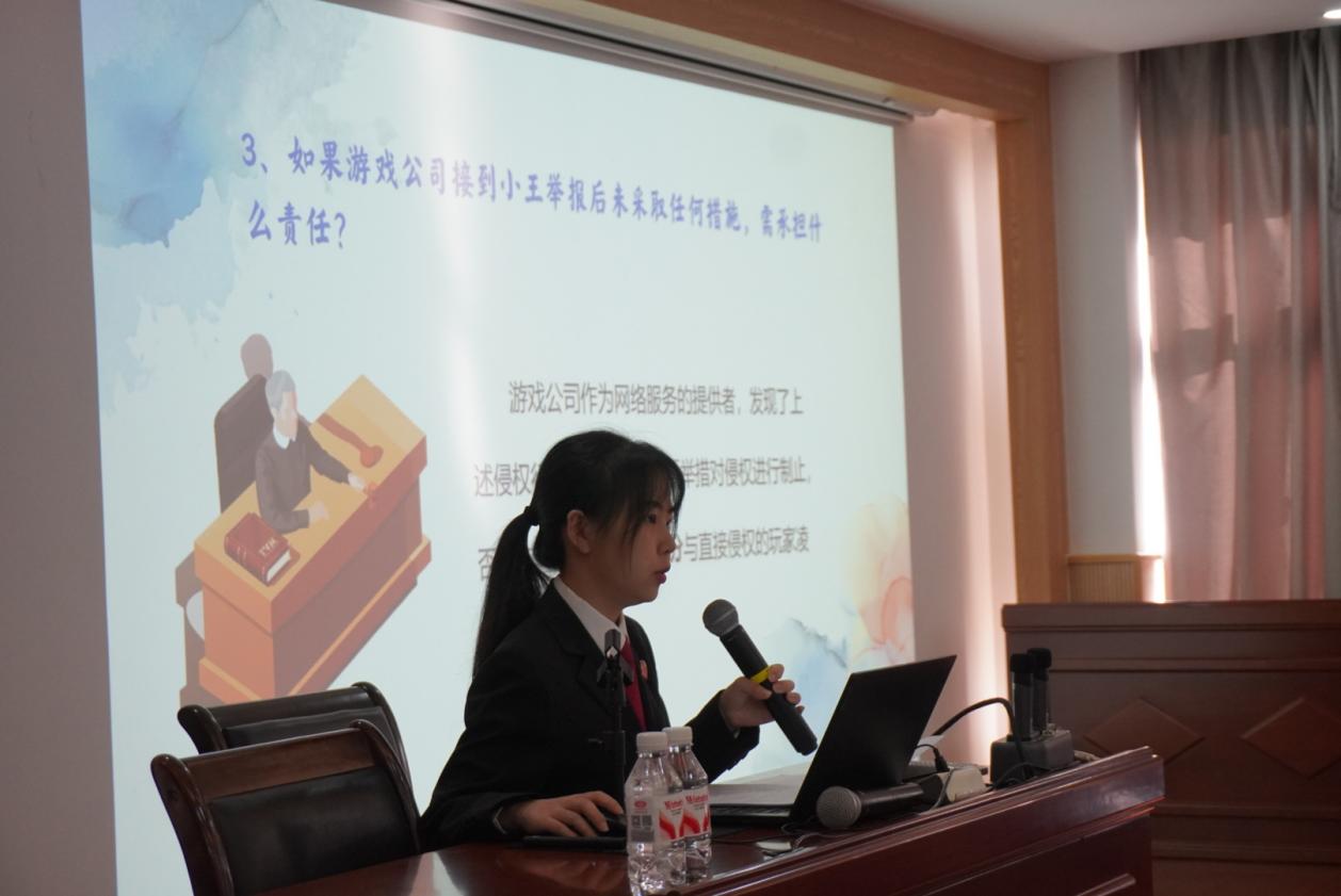 在讲座中,张法官围绕“网络言论”、“网络诈骗”和“网络沉迷”三大主题,结合真实案例与法律知识,深入浅出地讲解了网络世界中应注意的行为规范与风险防范。